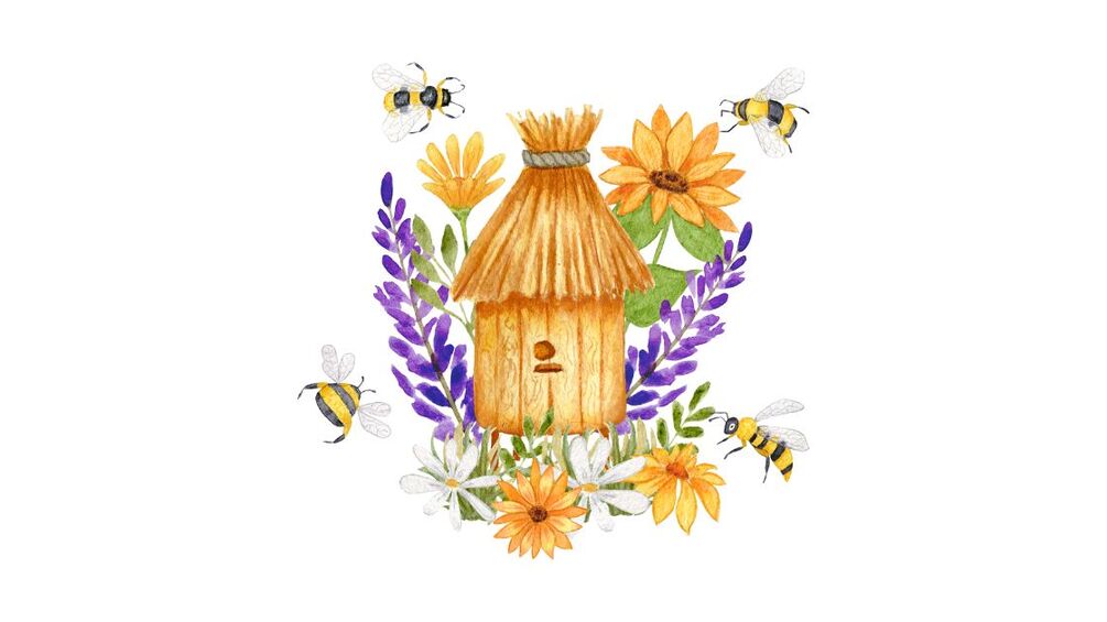 - Watercolor Beehive Illustrations